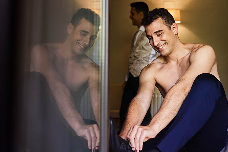 Raquel y Javier eligieron el Monasterio de Piedra por su historia y belleza. Antes de la ceremonia, nos sumergimos en los preparativos, disfrutando de la hospitalidad del hotel. Un toque especial fue la emotiva tradición de mensajes secretos en las suelas de sus zapatos, una conexión íntima que capturé con mucho cariño en mis fotografías.