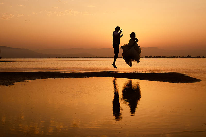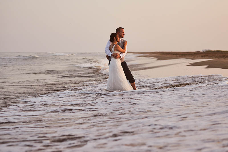 Con el anochecer asomándose en el horizonte, decidimos concluir la sesión en la Playa del Trabucador, aprovechando ese característico cielo naranja que el Delta del Ebro regala al atardecer. Fue el broche perfecto para una jornada llena de risas, complicidad y fotografías que no solo inmortalizan momentos, sino que cuentan la historia única de Vanessa y Marcos.