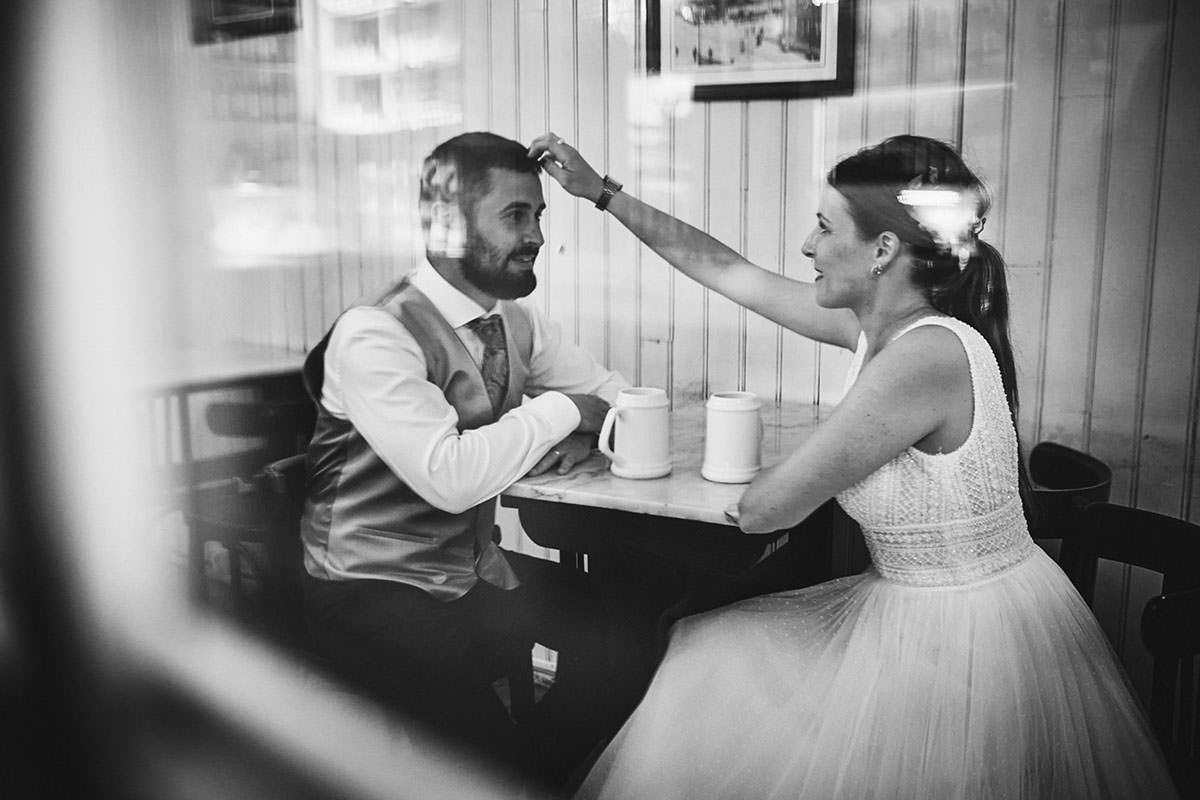 Por descontado, aquí hicimos una tanda de fotos desenfadas, buscando la naturalidad y un punto más divertido. Como no podía ser de otro modo, aprovechamos para recargar fuerzas y continuar con la Post boda en Santander.