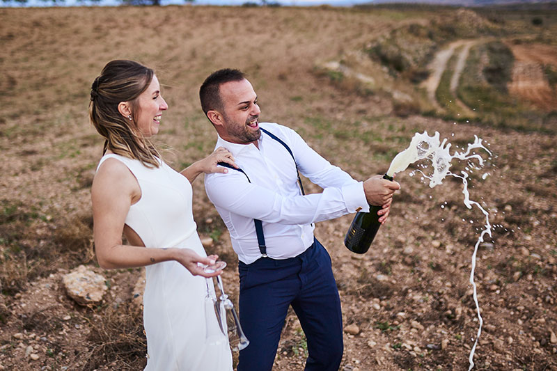 Para culminar la jornada, descorchamos una botella de cava, brindando por el amor eterno de Laura y Samuel. Con el imponente Moncayo como telón de fondo, este gesto simple se convirtió en un momento lleno de significado. La complicidad de la pareja y la majestuosidad natural se fusionaron, cerrando así un capítulo más de su historia compartida.