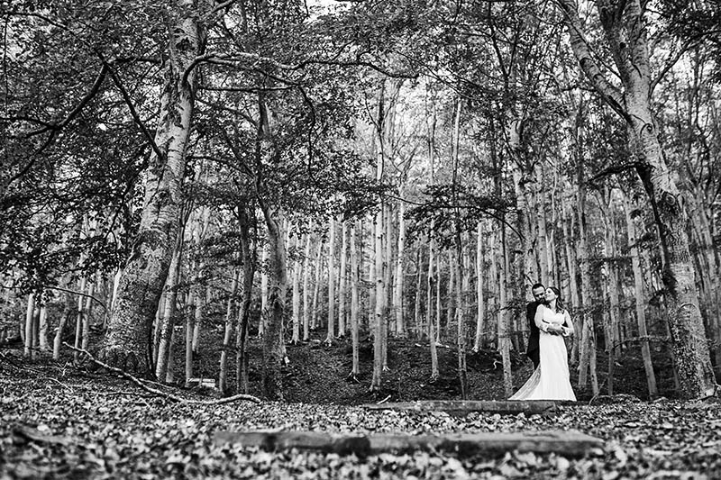 La postboda comenzó inmersos en un frondoso bosque, donde la pareja se entregó a la magia del momento. Centrados en la naturalidad y la expresión genuina de sus emociones, cada fotografía se convirtió en un reflejo auténtico de su conexión. Los colores vibrantes del otoño crearon un ambiente cálido y acogedor, aportando un toque adicional de romanticismo a la jornada.